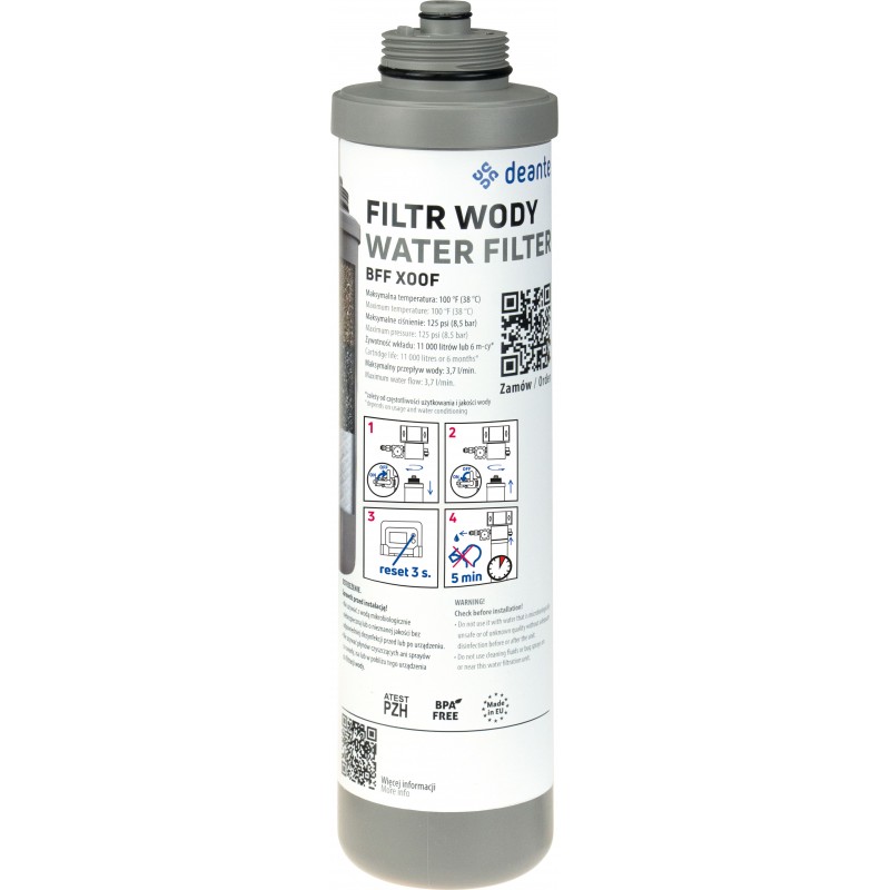 Filtr wymienny do zestawu filtracji wody (BFF_XZFP) należy wymieniać co pół roku lub po przefiltrowaniu 11 000 litrów wody. Produkt jest łatwy w montażu, co umożliwia szybkie i wygodne utrzymanie najwyższej jakości filtrowanej wody na co dzień, dbając jednocześnie o zdrowie i komfort użytkowników.